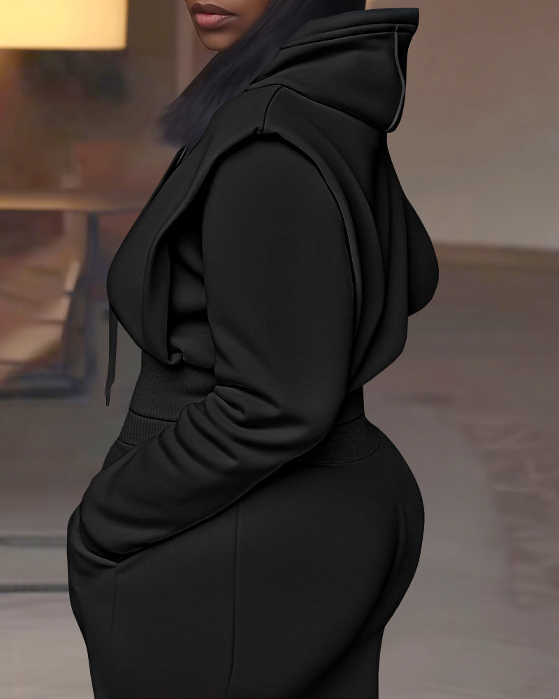 Beaded Hooded Top & Drawstring Pants Set