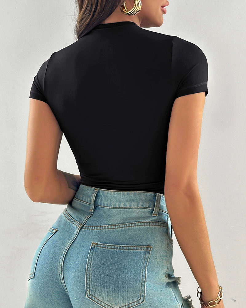 Glitter Lurex Mock Neck T Shirt Casual Sheer Mesh Slim Fit Blouse Top